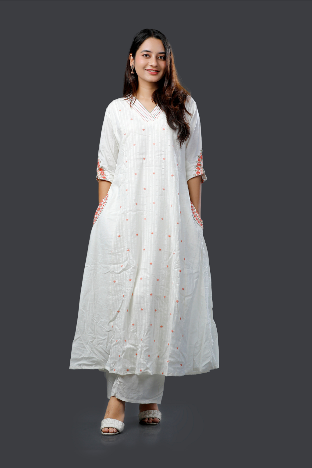 A timeless white kurtha featuring a clean, minimalist design crafted from soft, breathable fabric. Perfect for everyday elegance, festive layering, or casual sophistication.